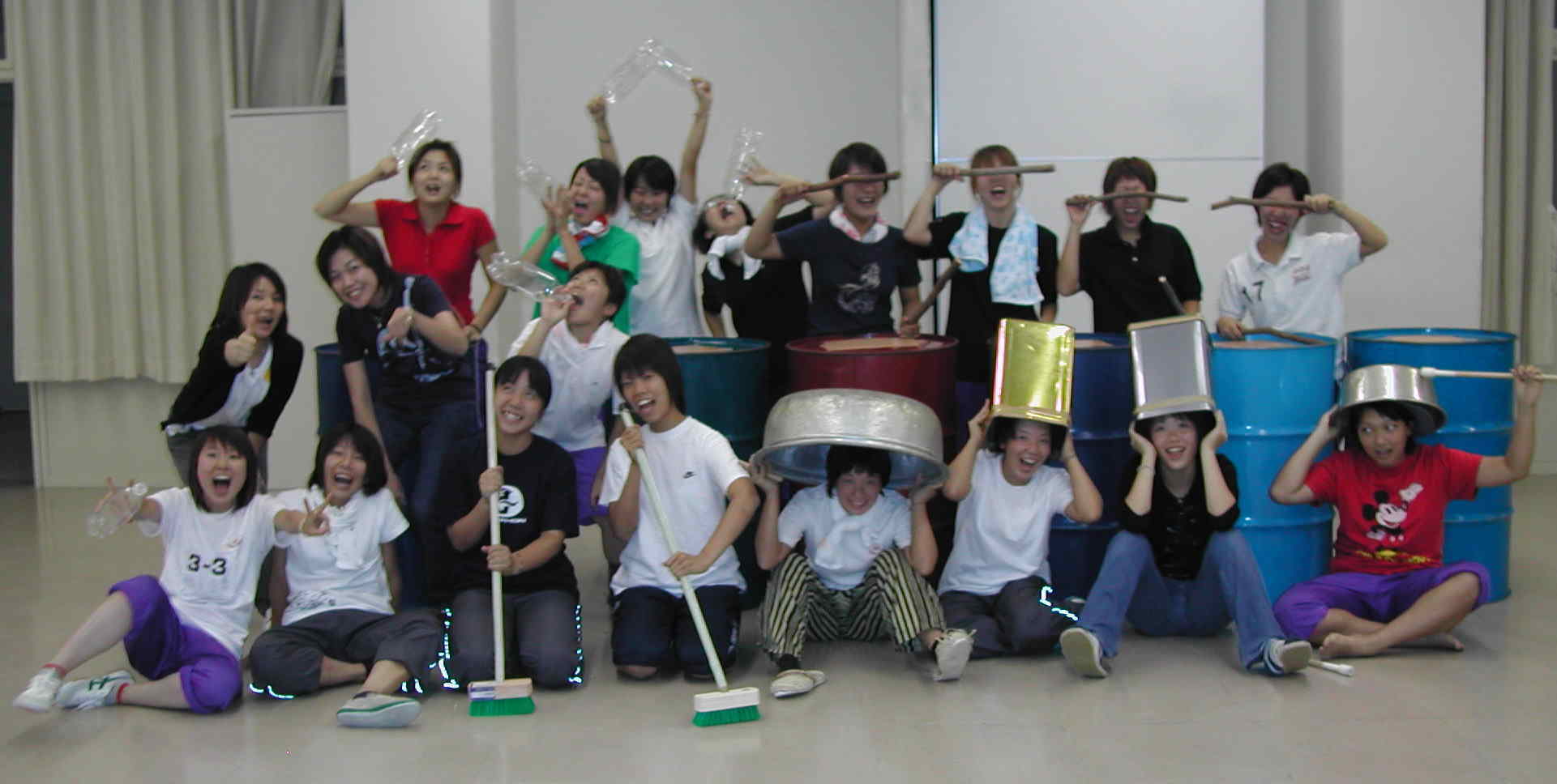 ドラム缶とたらい、ゴム長etc はがんばって集めてみます。人数ですが、高校最後なのでみんなで大きな事をしたい思いみんなに話てみたら、みんな興味を持ってくれて協力してくれることになり、16人になりました。大幅な変更ですが、大丈夫でしょうか?9月16日は全然、大丈夫です!ただ、8月25日にオーディション(といっても途中経過を見る簡単なものですが・・・)があるので、それまでに少しでも練習がしたいと思っています。お手数ですが基礎練を参考になるビデオなどを送っていただけないでしょうか?それと人数はどれくらいの割合がいいんでしょうか?全員女の子ですが、やる気と体力と根性だけはあるので、よろしくお願いします!