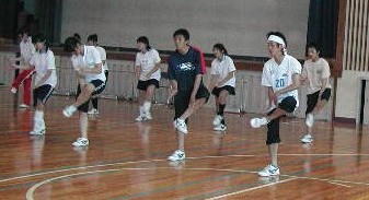 床が新品で鏡のようなら考えないといけませんが、心配ならリノリウムシート(卒業式のとき床に敷くシート)敷いたらどうですか。それから静岡東高校の生徒が見学したいと言ってますが良いですか?そちらに連絡してもらいますね。